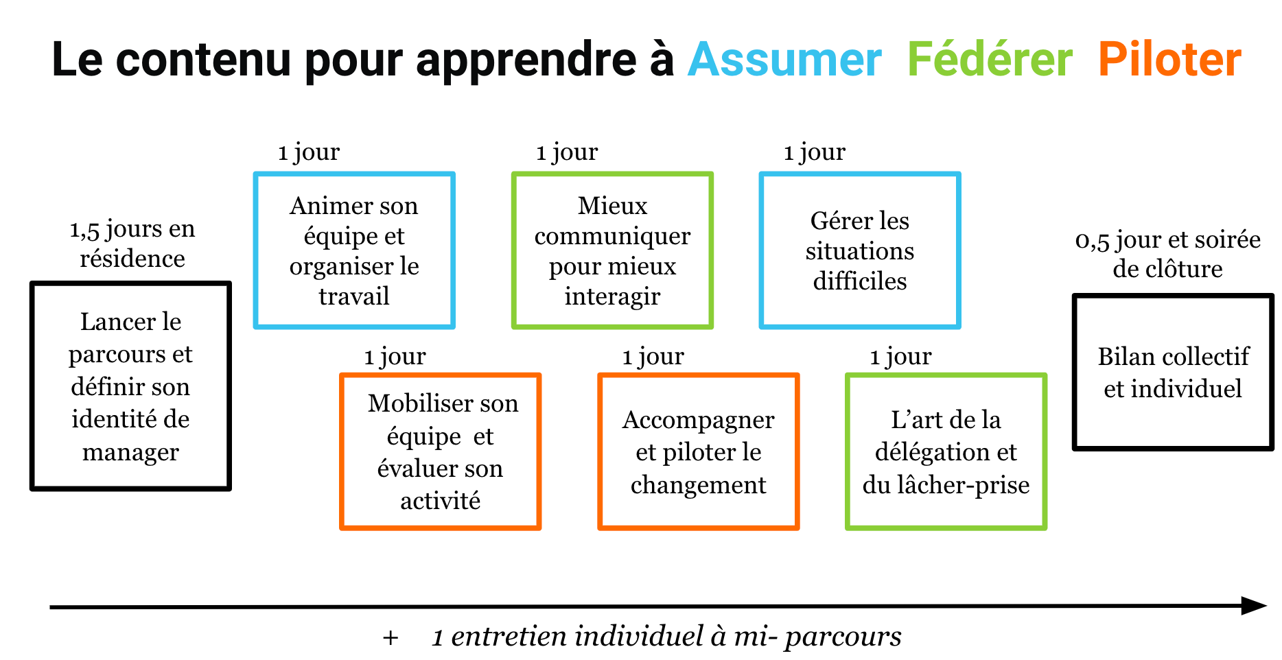 0,5 jour (soirée de lancement) + 1 journée - Animer son équipe et organiser le travail (1 journée) : Avril 2025